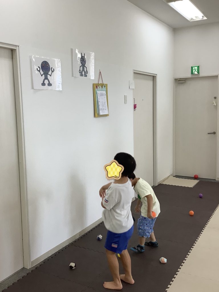 カードを狙ってボールを投げる中で、力加減や身体のコントロールする力を養えます✊