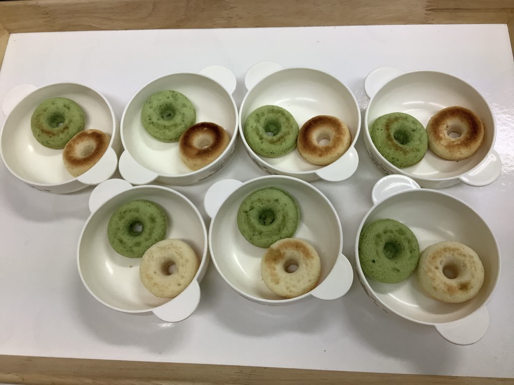 1つは米粉とお砂糖のシンプルなお味のドーナツと、もう1つは小松菜を混ぜたドーナツでした!