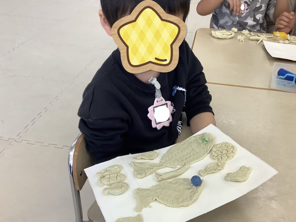 お子さんたちは「魚」や「アイス」、「お顔」など作品を作ってくれていました✨