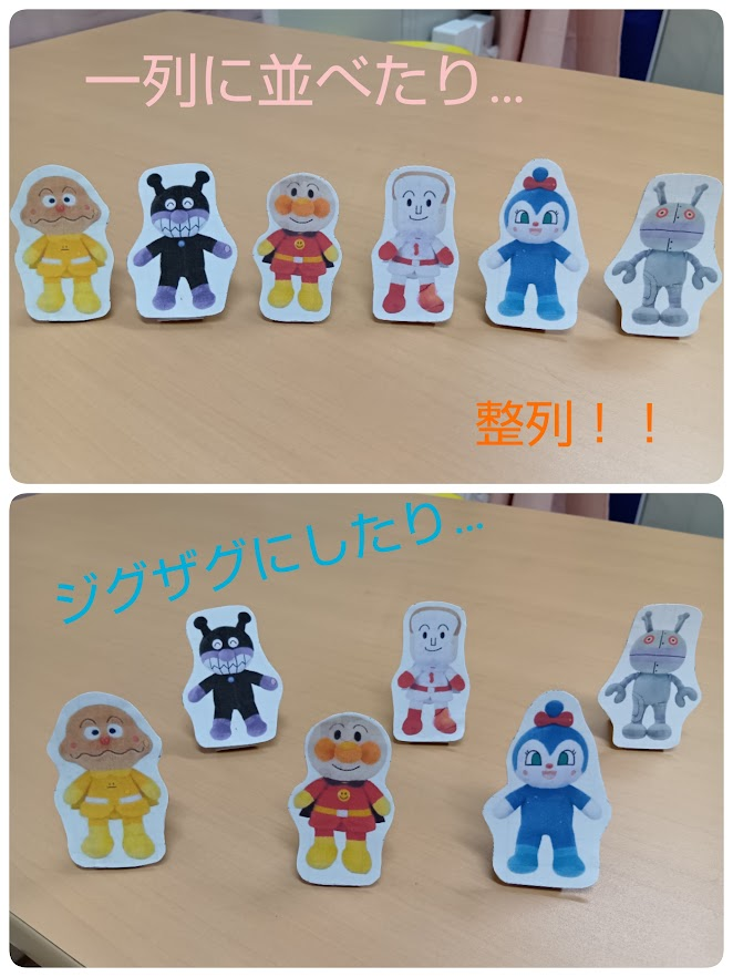 1列に並べたり、ジグザグに置いてみたり、難易度を調整して何回もチャレンジしてもらいましょう。