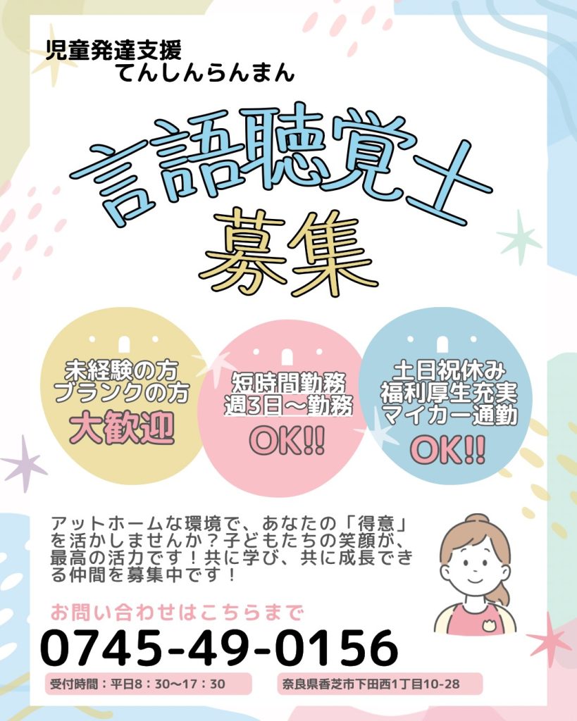 てんしんらんまんでは、一緒に働いて下さる言語聴覚士さんを募集しております☺️