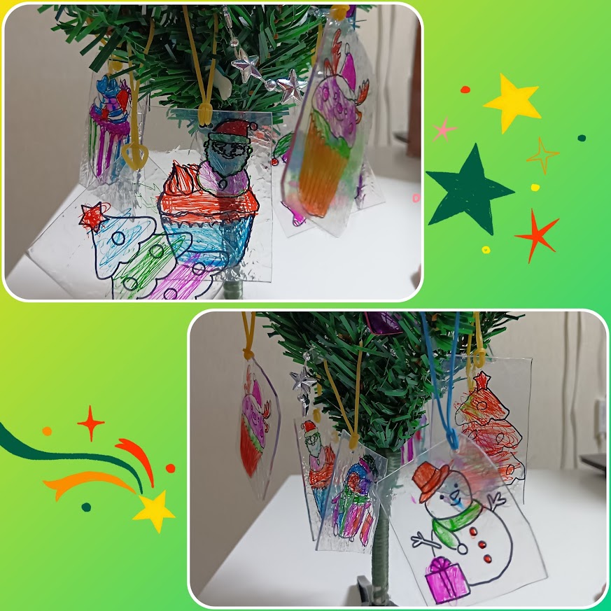 プラバンできんぎょのクリスマスツリーのかざりも作ってくれました🎄
