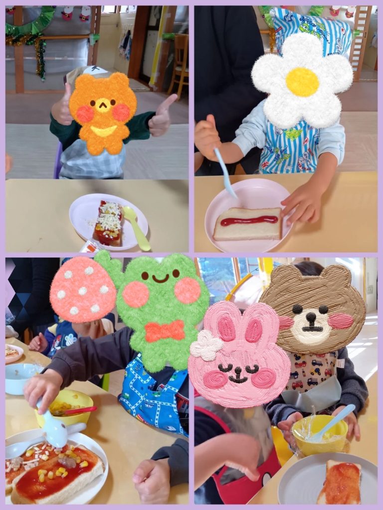 クッキングではピザトーストとシュガートースト作りに挑戦。ソースを塗って、具材をトッピングして…