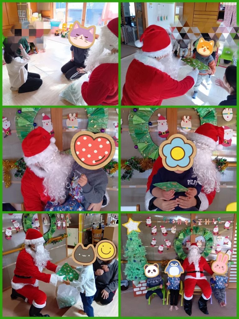 ちょっぴりドキドキしながらも、プレゼントをもらってニッコリ笑顔の子どもたちでした。